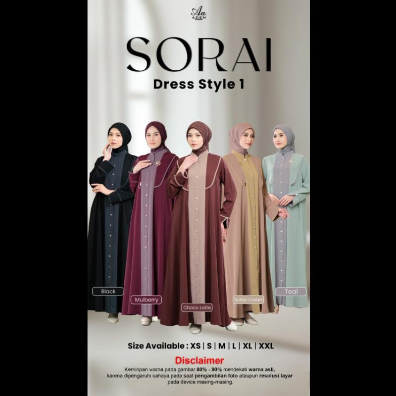 ? ? SORAI DRESS @a.d.e.n_hijab ? Harmony in every shade ? Open Pre-Order: 02 –15 APRIL 2026 Sorai adalah tentang pertemuan dua keindahan dalam satu momen. Lembut, tenang, namun tetap memikat. Sebuah dress yang hadir untuk setiap sisi dirimu— simple, atau statement, keduanya tetap elegan ? ? Material Produk ? Revenna Tekstur halus, lembut, adem, flowy, dan tidak nerawang. ? Ayana Voal Tekstur halus, ringan, lembut, dan nyaman dipakai. ?Detail Produk ? DETAIL — STYLE 1 - Dirancang dengan sentuhan detail yang memperkuat kesan classy: - Krah shanghai - Bukaan kancing full sampai bawah - Lengan lurus - Detail manset dengan list & kancing hias - Layer di bagian depan dress - Saku di sebelah kanan - Metal tag ADEN di bagian depan dress ? DETAIL — STYLE 2 - Dirancang dengan sentuhan feminin yang lebih statement: - Krah shanghai - Bukaan resleting depan (front zipper) - Variasi potongan pada bagian depan dress - Detail kancing & tali pita di sisi kanan dan kiri - Aksen lipit hadap di bawah kancing - Lengan balon - Manset dengan bukaan kancing - Saku di sebelah kanan - Metal tag ADEN ? DETAIL SCARf - Material: Ayana Voal - Desain motif eksklusif by @a.d.e.n_hijab - Ukuran: 115 x 115 cm - Finishing: Laser titik tiga (rapi & tahan lama) - Metal tag “Aa” di salah satu ujung scarf - Packaging scarf only: Soft Box ? DETAIL KHIBBAN (HIMAR BANDANA) - Khimar 1 layer menggunakan bahan Revenna yang lembut & flowy ? - Desain segitiga dengan layer panjang di bagian belakang, memberikan tampilan anggun ? - Dilengkapi tali bandana yang dapat diikat ke belakang, praktis dan stylish - Terdapat detail metal tag ADEN pada tali bandana sebagai aksen eksklusif ? ? DETAIL UMUM ? Pilihan Warna ? Black ? Butter Cream ? Choco Latte ? Mulberry ? Teal ?? AVAILABLE ITEMS - Dress Only (Style 1 & Style 2) - Scarf Only - Khibban Only - Set Scarf (Style 1 & Style 2) - Set Khibban (Style 1 & Style 2) ? Available Size: XS – XXL ? Pricelist : Cek di @a.d.e.n_hijab ? Packaging Dress / Set ? Goodie Bag Eksklusif Scarf Only ? Soft Box #soraidress #soraibyadenhijab #adenhijab #dressadenhijab #denayustyle #dresscantik #outfitmuslimah #dressmuslimah #ootdhijabstyle